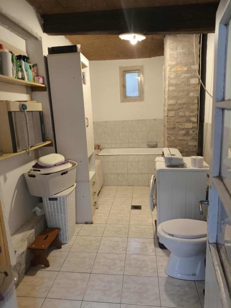 A ház régi parasztház, vályog falai, egymásból nyíló szobái vannak. Fürdőszobáját felújították, konyhája egyben az étkezővel szép tágas.