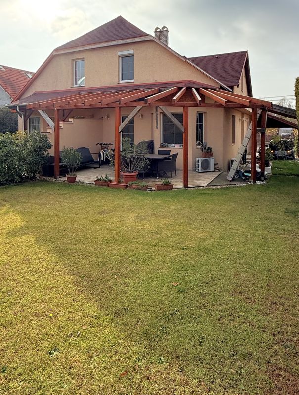 Soroksáron eladó egy könnyűszerkezetes ikerházfél kertes, csendes környezetben!