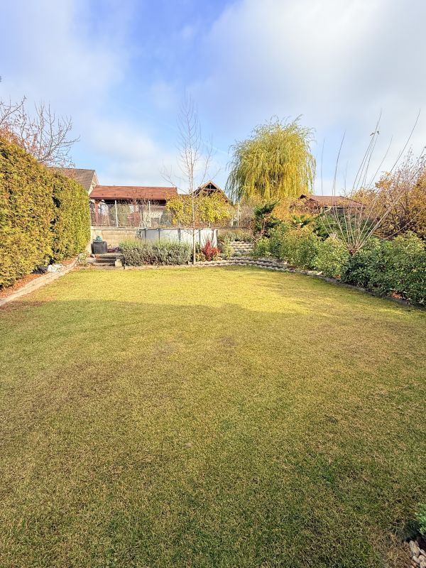A saját, szeparált kert 264 nm, amely tökéletes családi pihenésre, játékra vagy akár kerti sütögetéshez. A telek kerítéssel elválasztott, így az ikerházfelek teljesen saját, privát életteret biztosítanak. A ház előtt 2 autó számára kialakított felszíni beálló található.