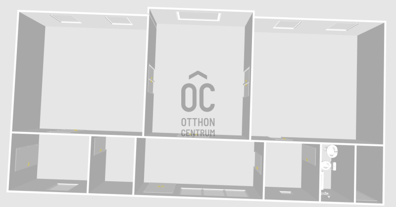 -felosztása: előszobából 2 is található, mivel az épület két oldalról megközelíthető, konyha, fürdő, 3 nagyméretű szoba, tároló, padlásfeljáró