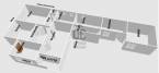 A lakótérben két szoba, konyha, kamra, fürdőszoba, külön WC, előszoba és közlekedők találhatók. A helyiségek burkolatai vegyesek: a két szobában padlószőnyeg, a kamrában beton, míg a többi helyiségben járólap borítja a padlót.