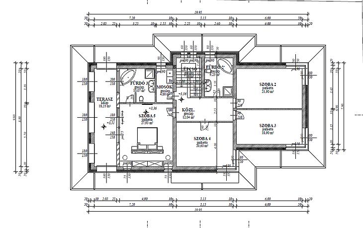 • 2 fürdőszoba (kád + zuhanyzó + WC)