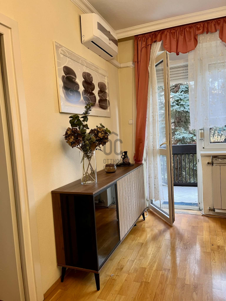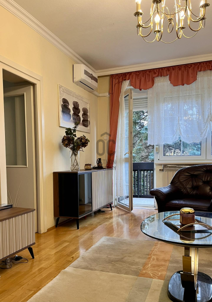 Törökvész frekventált, mégis zöldövezeti részén, a Baba utca Törökvész úthoz közeli szakaszán kiadó egy 62 m²-es, magasföldszinti, erkélyes, 2 hálószobás + tágas nappalis lakás, teljesen bútorozva és gépesítve.