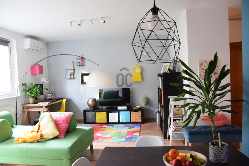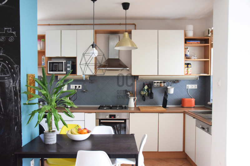 A lakás műszaki felszereltsége korszerű: légkondicionáló a nappali-étkező-konyha térben, modern gázkazán, részben padlófűtés, szúnyoghálóval és redőnnyel ellátott nyílászárók, valamint jó állapotú beépített bútorok.
