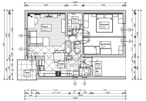 - 4 m²-es hangulatos terasz, a belső kertre néző kilátással