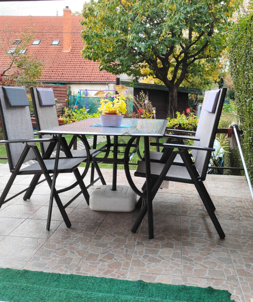 Az udvarban tárolóhelyiség is található, így a nyaraláshoz vagy a mindennapi élethez szükséges eszközök is kényelmesen elférnek. A kapubejárat mellett egy ponyvagarázs nyújt védelmet járművének.