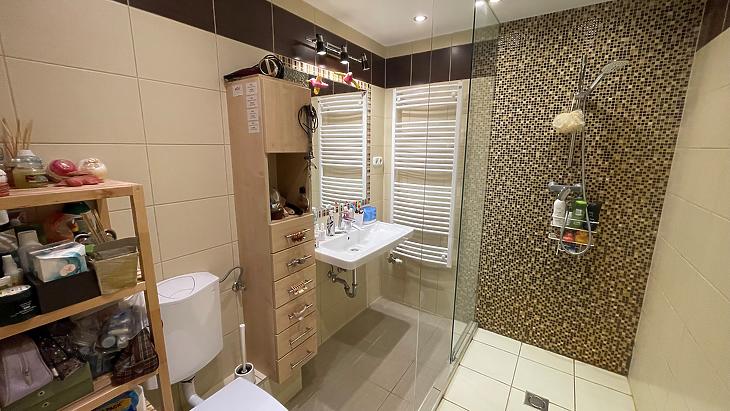 Szomszédságukban találjuk az épített zuhannyal és wc-vel szerelt fürdőszobát és a háztartási helységet, amelyből igény szerint még egy további fürdőszoba is kialakítható.