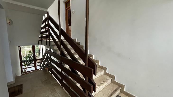 A lépcsőházba lépve szép, felújított környezet fogad minket. A lépcsőházi nyílászárók új, hő és hangszigetelt üvegezésű, minőségi, fa ablakok, ajtók.