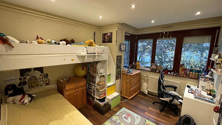 A jó állapotú házat egy nagyméretű, gondozott kert öleli körbe.