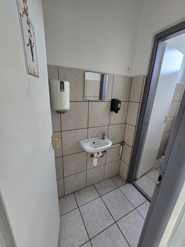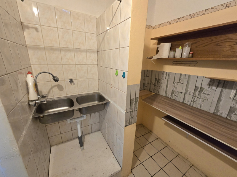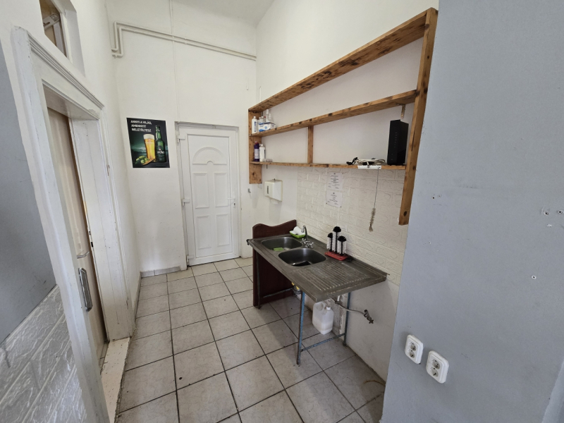 Az utcafrontról megközelíthető, tágas fő üzlettér fogad minket, amelyhez több mosdóhelyiség és egy kisebb konyhai rész kapcsolódik. Az épület hátsó részében további mellékhelyiségek, tárolók, valamint egy külön kialakított, kisebb lakrész található – ezt a tulajdonosok saját használatra alakította ki, hogy szükség esetén ott tölthessék az éjszakát. A lakrész alkalmas vendégszobának, irodának vagy személyzeti pihenőnek is.