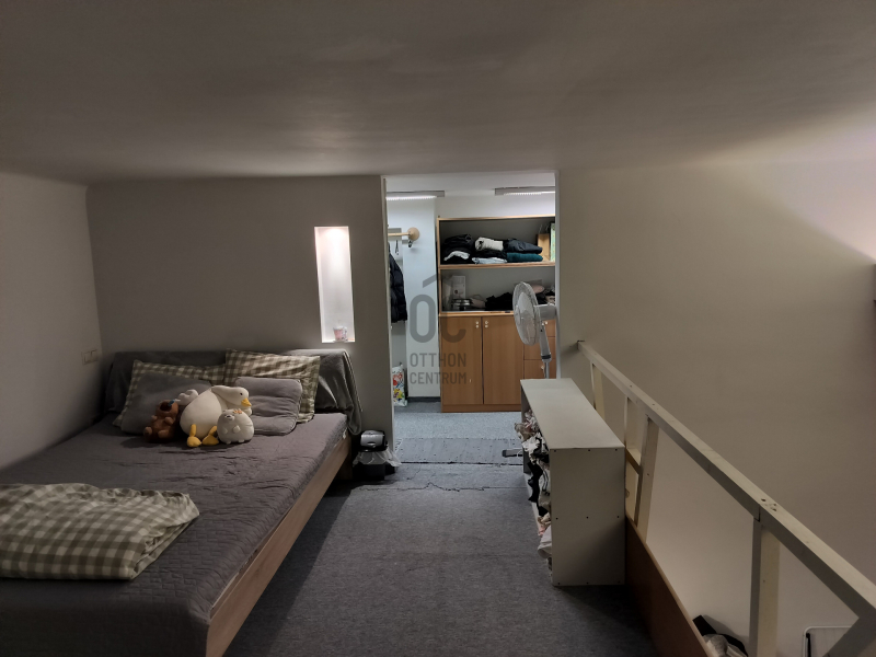 -felette egy tágas állógaléria (kb. 20 m²), ahol hálószoba és gardrób lett kialakítva.
