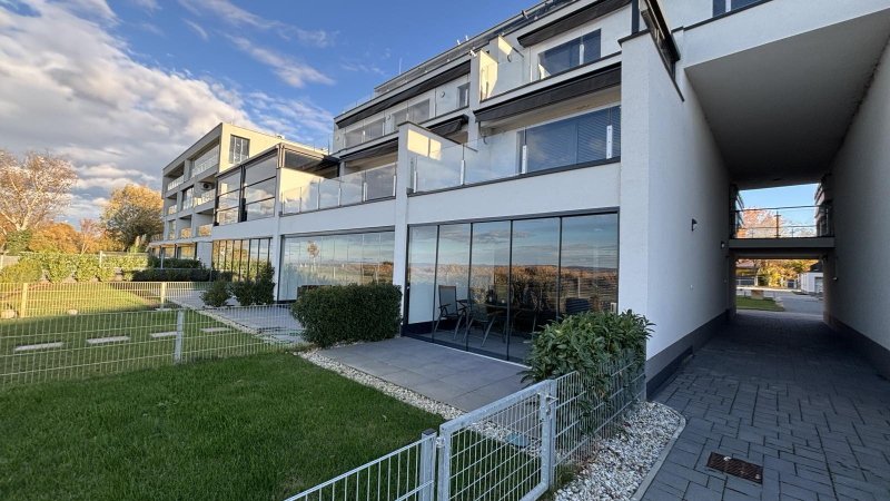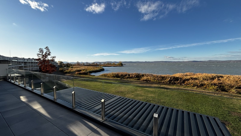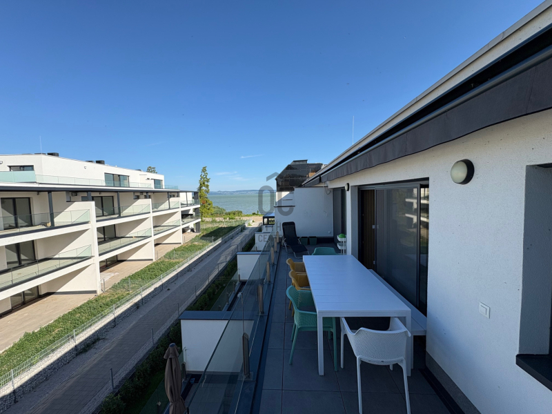 A 2023- ban átadott 54 nm-es lakás a második emeleten található , Balatonra néző panorámával.