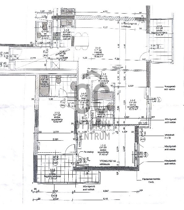 Fűtés: Házközponti fűtés egyedi méréssel, ami kedvező fűtési költségeket garantál.