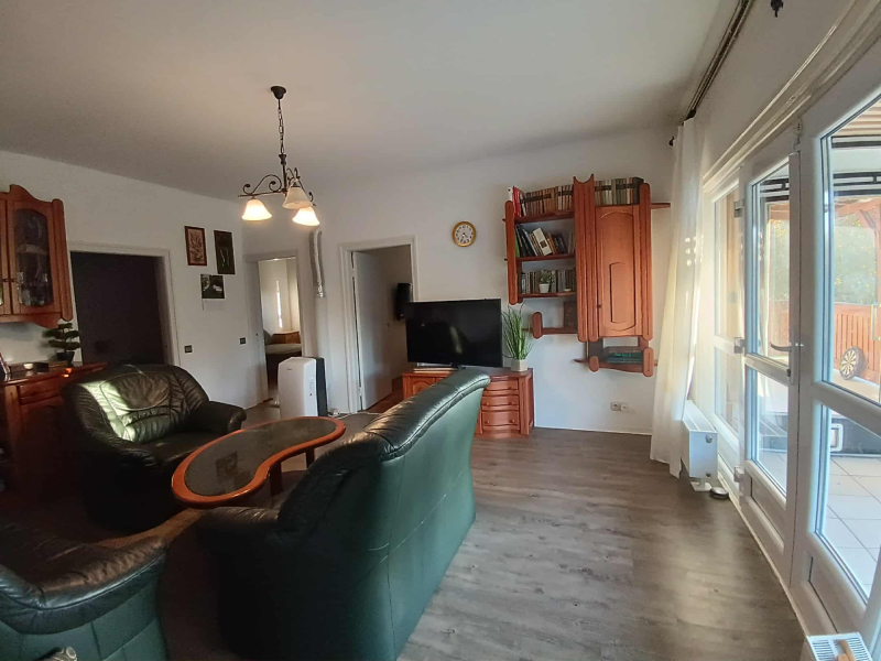 - 3 külön nyíló szoba, nappali, étkezős konyha, kamra, fürdőszoba, hatalmas üvegfelülettel rendelkező előszoba a világos terek érdekében