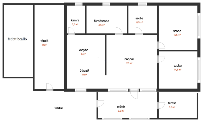 - utcafronti terasz (9nm), hátsó terasz ( 14,8nm), fedett beálló (21 nm)