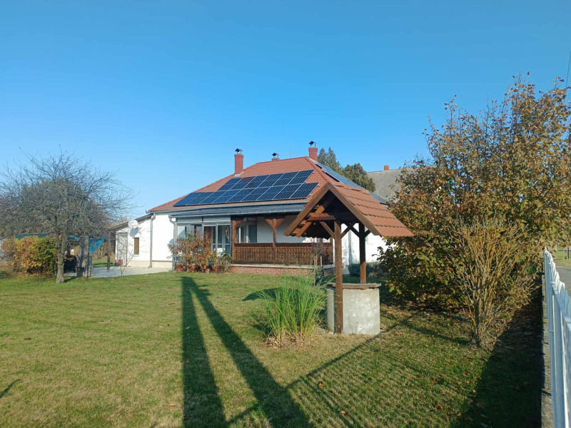 Nagy teraszokkal, világos előszobával, 4 szobával, tágas fürdőszobával, étkezős konyhával rendelkezik, így bőven van hely a kényelmes életvitelhez. A ház kiváló statikai állapotú, azonnal költözhető, nem igényel felújítást. A fűtés a napelemeknek köszönhetően elektromos cirkó rendszerrel megoldott, a nyári hónapokban pedig a klíma biztosítja a kellemes hőmérsékletet. A házhoz tartozik egy fedett beálló, fedett kerti kiülő és a vendégek számára egy telepített lakókocsi is. A szépen gondozott kert, a 34 m utcafronti széles dupla telek, az ásott kút tovább fokozza az ingatlan értékét, lehetőséget adva a zavartalan pihenésre és a kikapcsolódásra a saját otthonában.