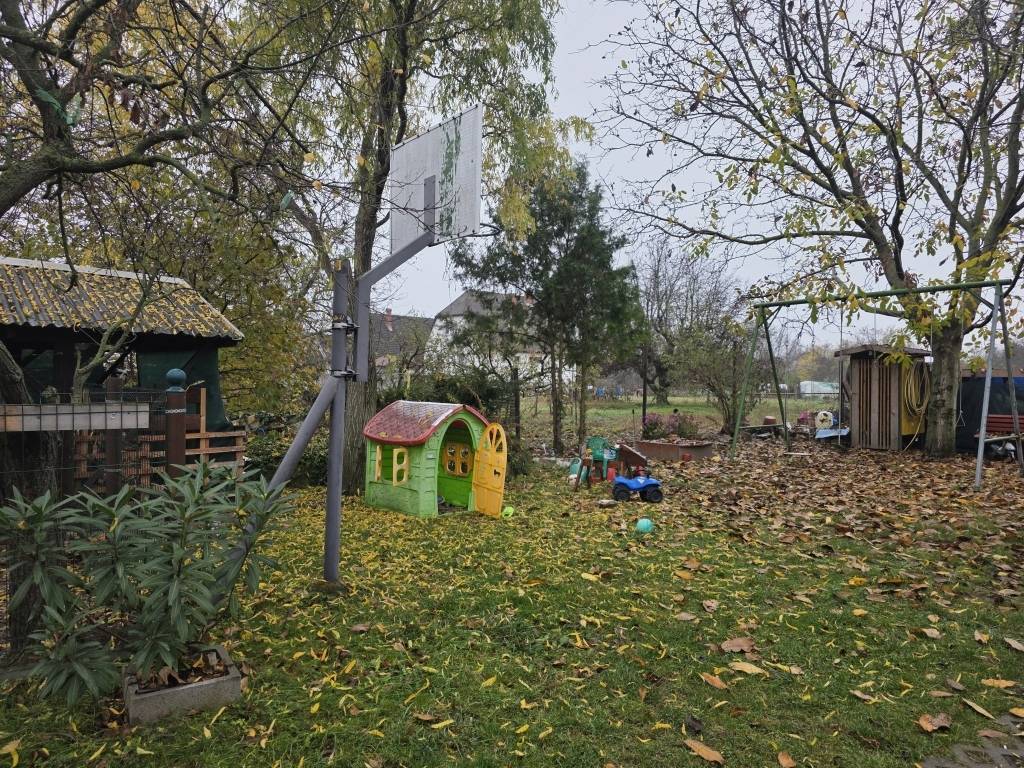 1032 m2-es parkosított telken fekszik, melynek udvara rendezett, A telken ásott kút, szaletli, tárolók, fedett kocsi beálló, nyári konyha, műhely található.