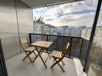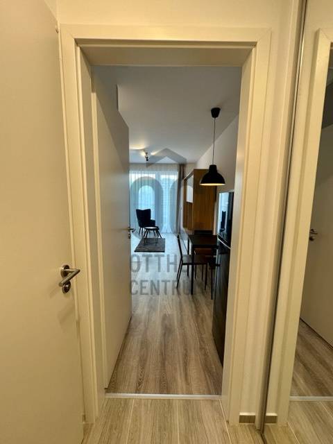 8. emeleten található, rendkívül világos, bútorozott. A 6.5 m²-es erkély remek lehetőséget ad a friss levegőn való feltöltődésre, amelyet elősegít a lakás csendes fekvése is. A lakáson belül az ideális hőmérsékletet mennyezeti hűtő-fűtő rendszer biztosítja, valamint korszerű nyílászárók segítik. A lakásban továbbá okos rendszer működik, akár telefonról is irányítható a redőny, fűtés és világítás.