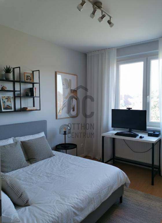 A kilátás a városra és a víztoronyra a 4,2nm-es erkélyről egyedülálló. A két kisebb szobához pedig franciaerkély tartozik. A társasházban közös tárolási lehetőség is adott.