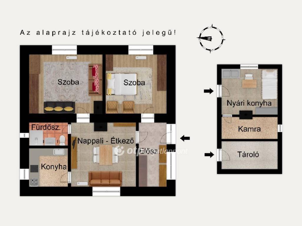 - 2 szoba + nappalis,