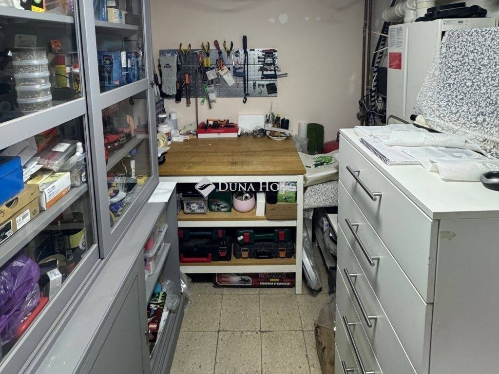 A félszuterén szinten 32 m²-es garázs, külön kazánház, egy nappali vagy játszószoba, a háztartási helyiség, valamint a szauna, a hozzátartozó zuhanyzóval található.