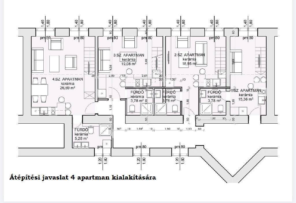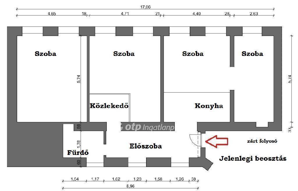Budapesten a VI. kerületben a Bajcsy Zsilinszky úton eladó egy 121 nm-es 4 szobás lakás, ami adottságaiból adódóan jól átalakítható egy 4 lakásos apartmanná, ahol minden lakrész külön nyílik, van külön fürdő és kis teakonyha a lakásokhoz (lásd átépítési alaprajz).