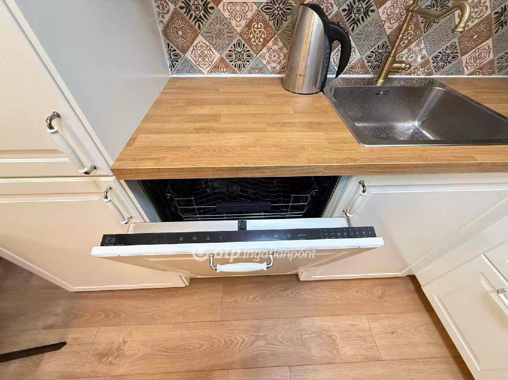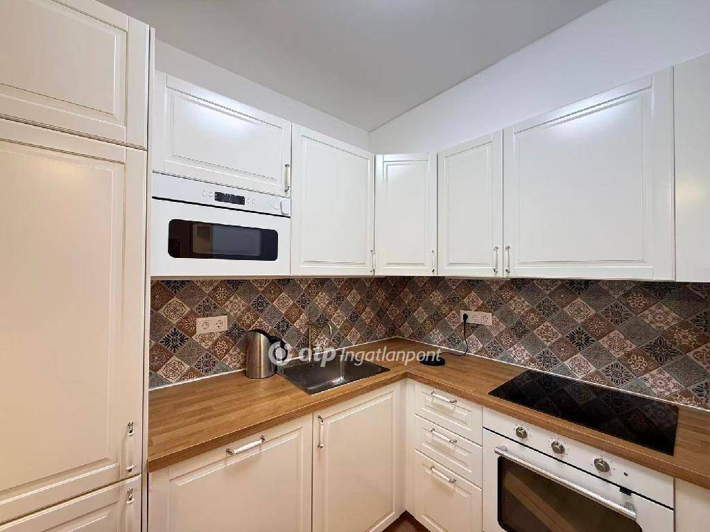 A modern építészeti irányzatoknak megfelelő, liftes, négyemeletes társasház kifinomult megjelenésű és praktikus elrendezésű. A biztonságos, zárt és ízlésesen kialakított lépcsőházból a tágas, beépített gardróbbal ellátott előszobába léphetünk. Bal oldalon található a kádas fürdőszoba, egy különálló tárolóhelyiség, valamint a hálószoba. A lakás központi része a világos, keleti fekvésű, amerikai konyhás nappali, amely közvetlen kijáratot biztosít a teraszra és a gondozott kertre, mind a nappaliból, mind a hálóból megközelíthetően.