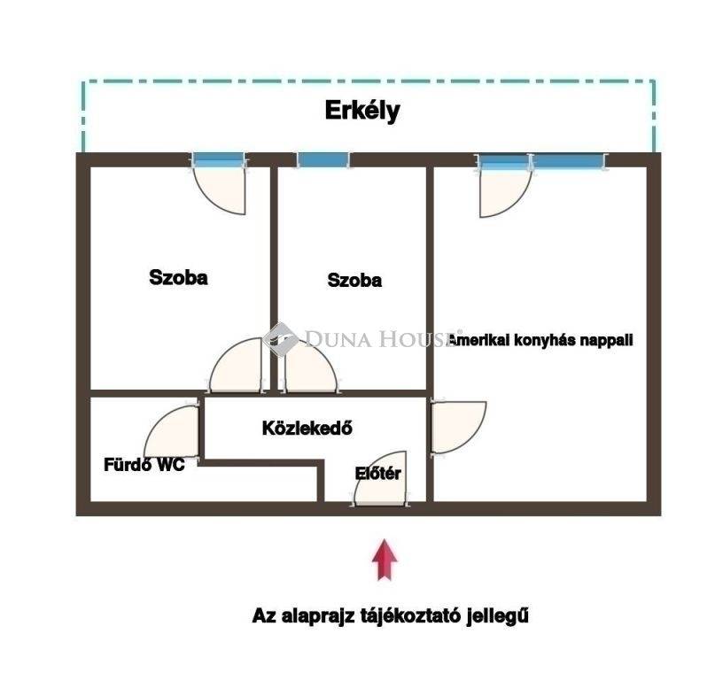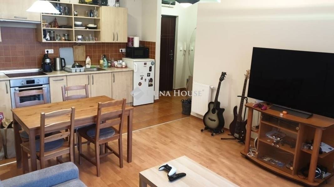 A 104 lakásos lakóparkban gondozott belső kert és 24 órás házfelügyelet is van. A hét emeletes lakópark alsó szintjén üzletek és kényelmi szolgáltatások vehetők igénybe. A hatodik emeleten lévő lakás 47, 90 m2 nettó alapterületű+9,84 m2 erkély tartozik hozzá. A lakótérben amerikai konyhás nappali, két hálószoba, előtér, kádas fürdőszoba, közlekedő van.
