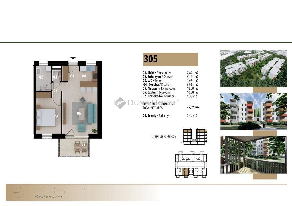 Az eladó lakások alapterülete 42 és 80 nm közötti, így mindenki megtalálhatja a maga számára optimális életteret.