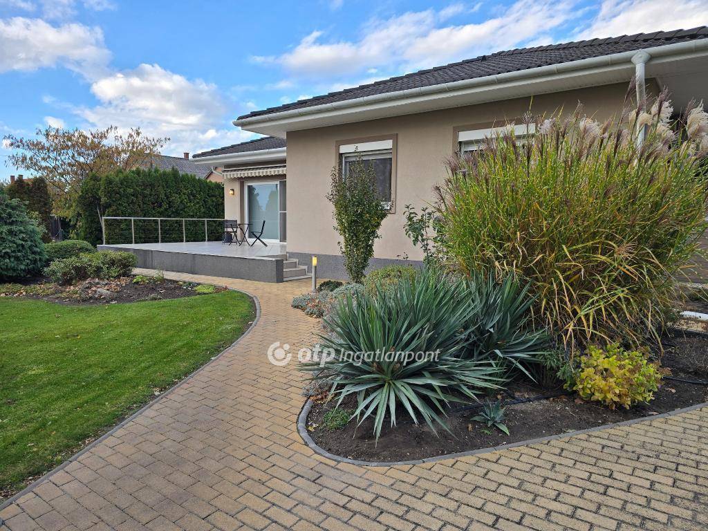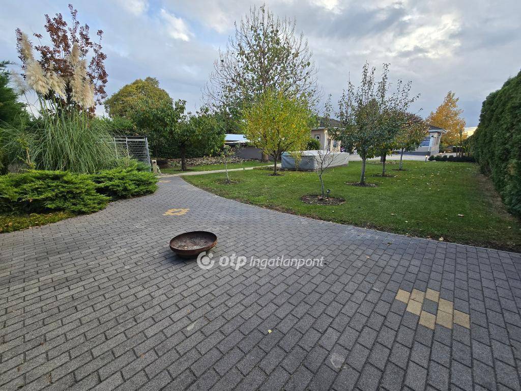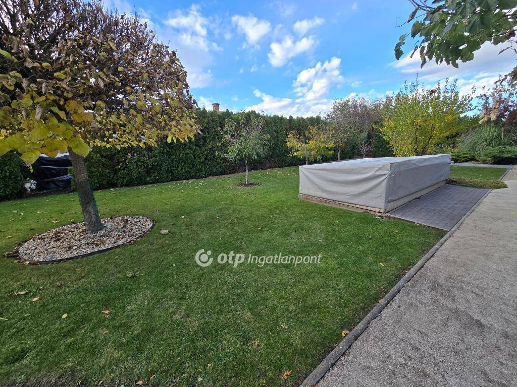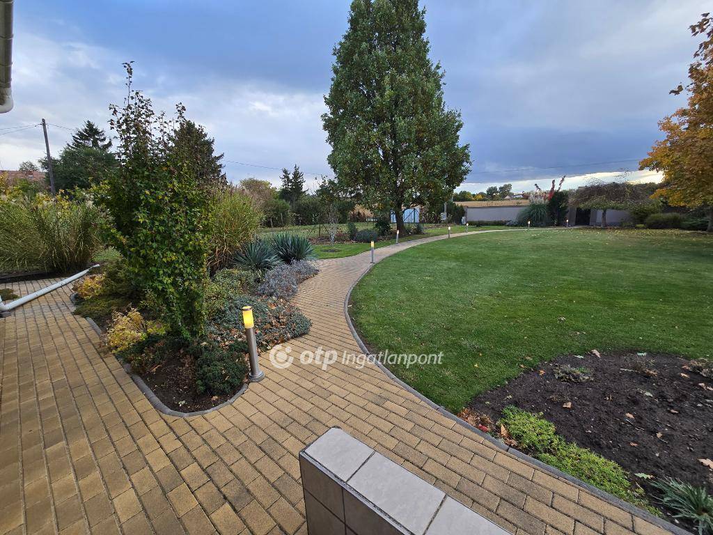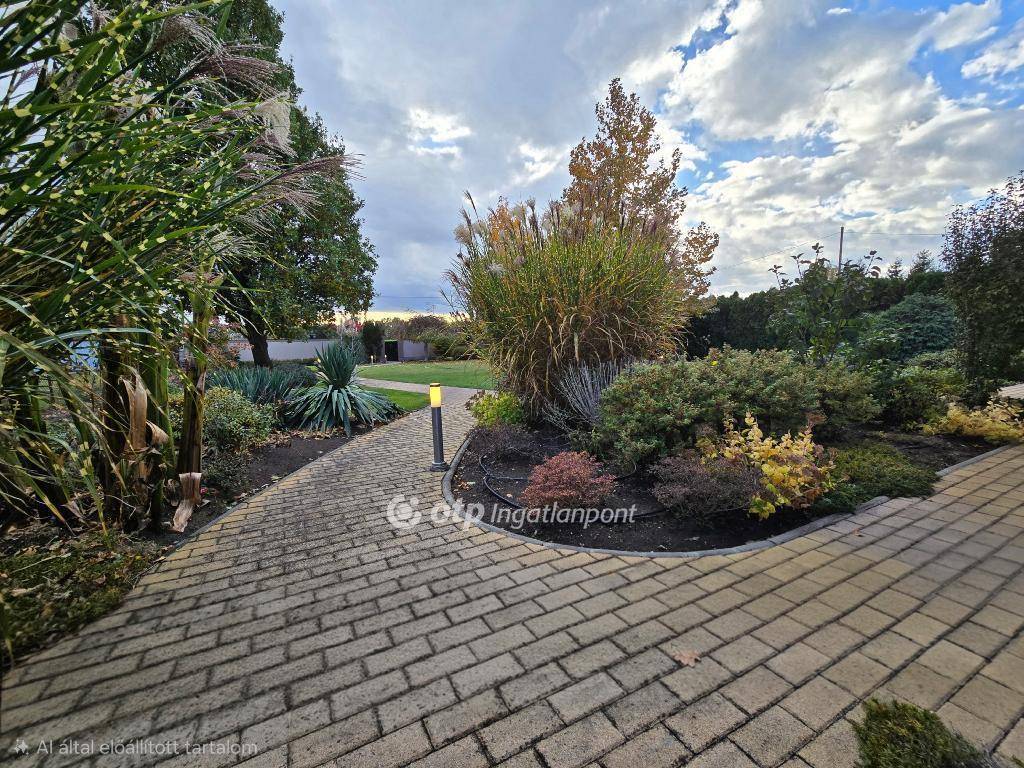 A 2449 m2-es telek a ház igazi ékköve, mérnöki precizitással megtervezett és szeretettel gondozott kert, ahol a dísznövények és egzotikus fák különleges harmóniát teremtenek. Az előkertben árnyas fák és ligetes rész fogadja a látogatót, míg a ház mögött mediterrán hangulatú udvar tárul fel pálmafával, banánfákkal, barack-, cseresznye-, körte- és fügefákkal, valamint citromfűvel, mentával, zsályával, eperrel és datolyával. A növényzet öntözését fúrt kútról működő, 7 zónás automata öntözőrendszer biztosítja.