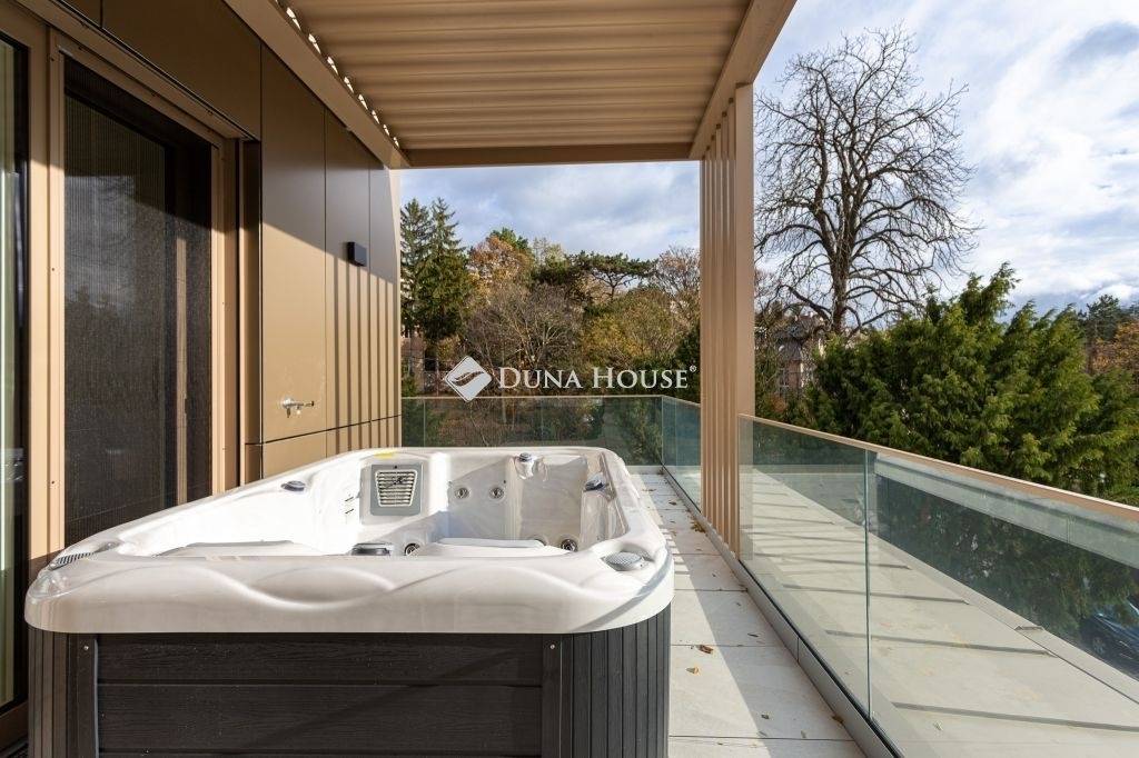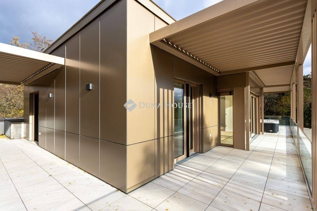 Pasarét zöldövezeti részén, a II. kerület egyik legkedveltebb pontján épült meg 2025-ben ez az exkluzív, ötlakásos, liftes társasház, amely modern építészetével, prémium anyaghasználatával és innovatív technológiáival a kortárs luxus új szintjét képviseli. A 2234 m²-es telken álló háromszintes épület a természetközeli életérzést ötvözi a városi kényelemmel, nagy hangsúlyt fektetve a tágas, világos életterekre és a privát szférára. Minden lakás teraszos, a felszereltség része a jacuzzi és a pergola, a földszinti otthonok kertkapcsolatosak, a felsőbb szintekről zöld lombkoronára vagy panorámára nyílik kilátás.