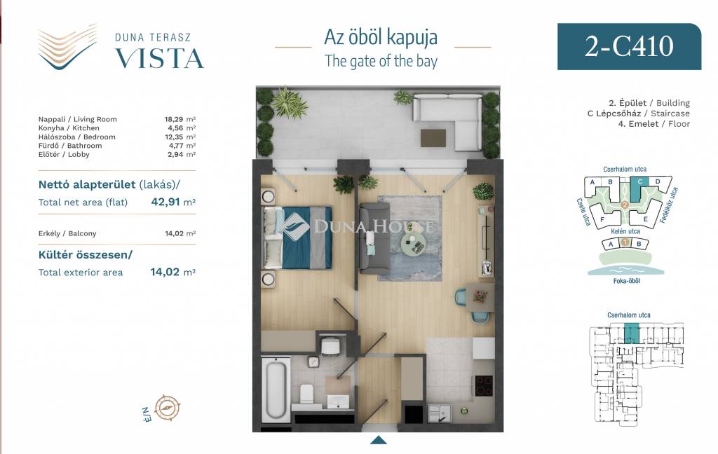 Eladó exkluzív 2 szobás lakás a Marina Parton vízparti társasházban!Fedezze fel a modern városi életstílus és a természet közelségének tökéletes harmóniáját Budapest egyik legkeresettebb részén a Marina Parton!-Lakás jellemzői:Újépítésű, exkluzív társasház 4.. emelet2 szoba, összesen 42,91 m² lakótérTágas, 14,02 m²-es erkélyUtcai nézet, világos, csendes lakásÁtadás várható: 2026. szeptember-Befektetésnek és otthonnak is ideális:Legyen szó hosszú távú befektetésről vagy saját használatról, ez az ingatlan biztos választás. A Marina Part kiemelkedően jó lokációval, magas bérleti hozammal és folyamatos értéknövekedéssel büszkélkedhet.-Fizetési ütemezés elérhető!Ne maradjon le erről a páratlan lehetőségről! Keressen bizalommal.