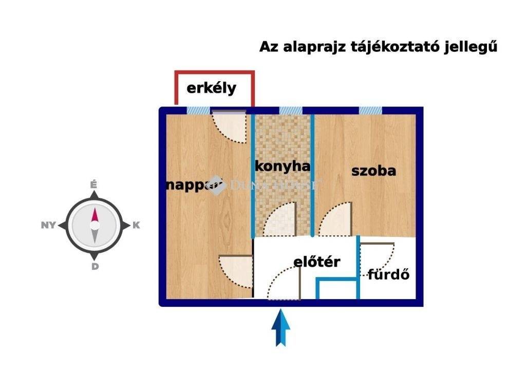 A 42 nm + erkélyes ingatlanban, nagy nappali, egy hálószoba, konyha,