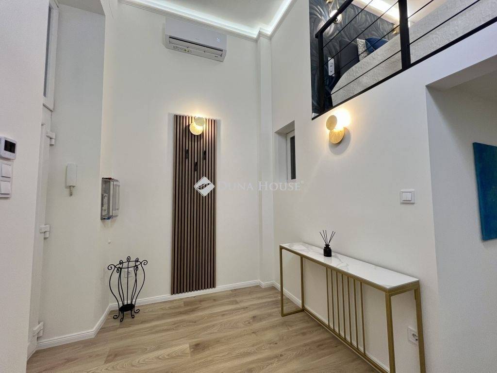 Eladó galériás lakás a Boráros tér közelében!Boráros tér közvetlen közelében eladó egy teljesen felújított, berendezett, egy szobás lakás, amelyhez 14 nm-es galéria tartozik. A lakás alul 207 cm, felül a galéria 183 cm magas, a teljes belmagasság 405 cm, így a térérzet rendkívül tágas. A galérián egy háló rész és egy gardróbszekrény kapott helyet, miközben a nappali szabadon marad.Az ingatlan modern kényelmet kínál: padlófűtés, klíma, valamint teljesen gépesített konyha beépített mosogatógéppel gondoskodik a komfortos mindennapokról. A vételár tartalmazza a bútorokat, az ingatlan tehermentes, azonnal költözhető.A környék élénk és jól ellátott: néhány perc sétára van HÉV, villamosok (2, 4-6, 51), buszok, boltok, éttermek, edzőtermek, és a Duna-part, ami a kikapcsolódást is biztosítja.Ez a lakás első otthonnak vagy befektetésnek is ideális: modern kialakítása, praktikus galériája és központi elhelyezkedése miatt könnyen kiadható.További információért keressen bizalommal!