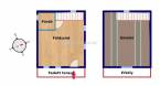 A ház alapterülete 30 m2, bejárat előtt fedett terasz található. A földszinten helyezkedik el a nappali konyhával és a fürdőszoba zuhanykabinnal, az emeleten pedig egy tágas hálószoba erkéllyel.