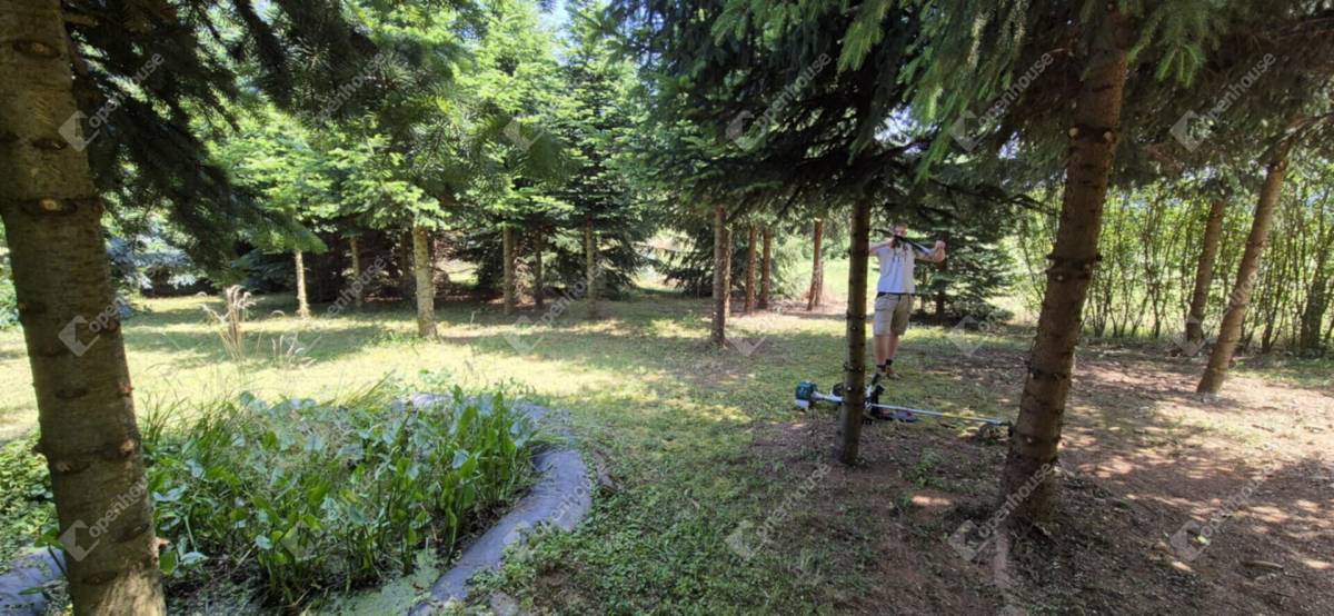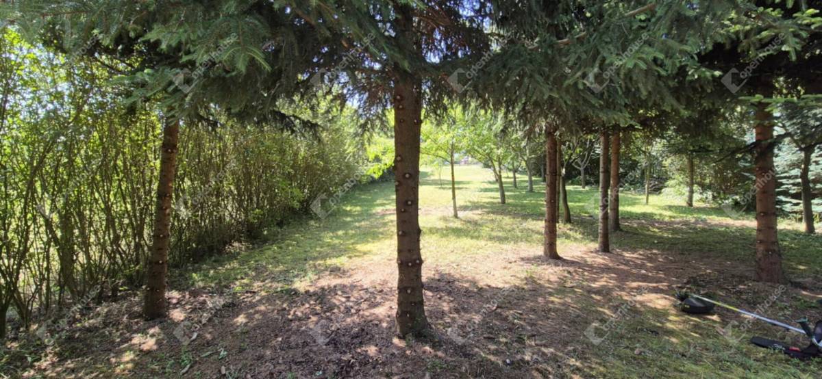 A telek végében egy kis erdős rész található, fenyőkkel és lombos fákkal tarkítva, amelyek kellemes árnyékot és hűsölési lehetőséget biztosítanak a nyári melegben – így a természet közelségét a saját kertjében élvezheti.