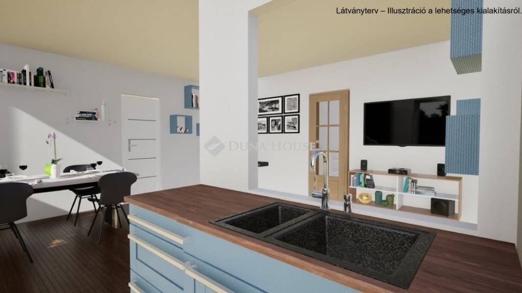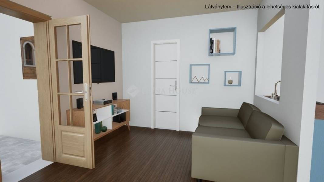 Elosztás:1 szoba + nappali, a nappali kiválóan átalakítható amerikai konyhás nappalivá egy válaszfal eltávolításával.