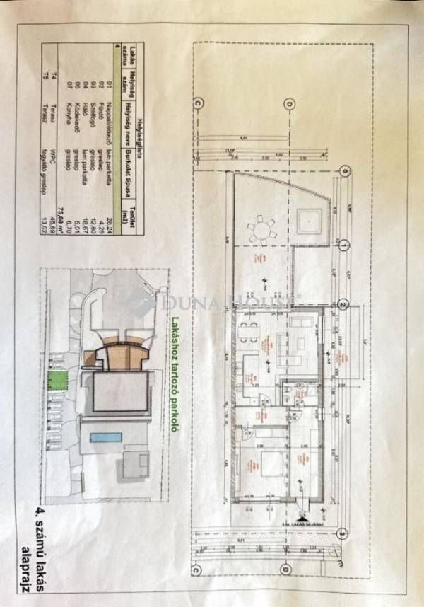 - 76 nm nettó alapterületű lakrész ( alakítható elrendezés, jelenleg: nappali+ étkező, fürdő Wc-vel, előtér, szoba, közlekedő, konyha)