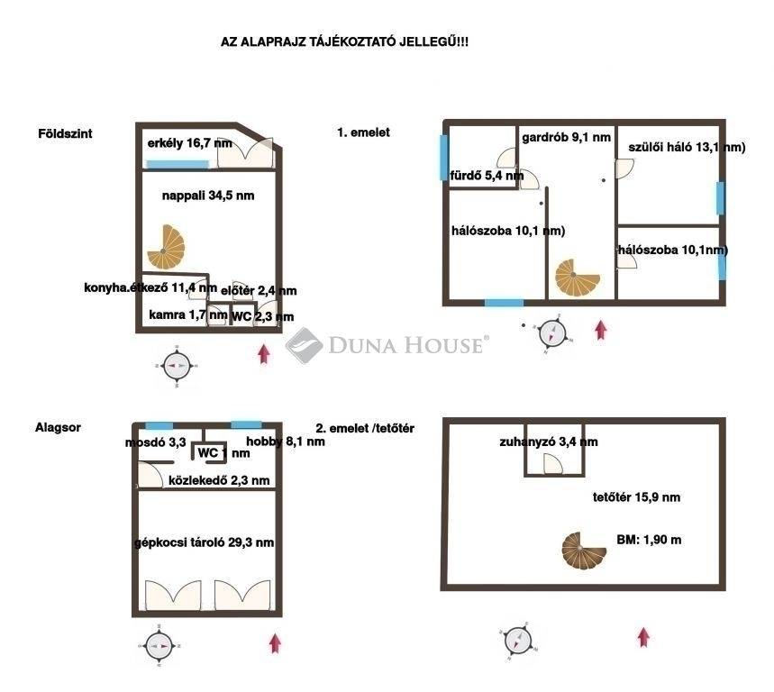 Elegáns panorámás sorházi otthon Törökvész egyik legjobb részénA II. kerület zöldövezeti, rendkívül keresett részén, Törökvészen kínálunk eladásra egy 184 m²-es, 4 szintes, panorámás, szélső sorházi otthont.A ház sorházi elrendezésű, azonban csupán egy szomszéddal érintkezik, így kivételesen intim, családi ház jellegű életteret biztosít. A Budai-hegyek felé nyíló lenyűgöző panoráma, a nagy terasz és a privát kert a város egyik legkellemesebb zöld környezetében kínál nyugalmat.Helyiséglista és elosztás: Alagsor: 44 m²Kétállásos, automata kapus garázsKazánhelyiségFürdőszobaFöldszint: 69 m²34,5 m²-es, világos nappali kandallóval2,40 m² előszoba11,4 m²-es étkezó-konyha1,70 m² kamra2,30 m² vendégmosdó16,70 m² panorámás erkély 1. emelet: 44,40 m²9,1 m²- gardrób2,4 m²- fürdő jakuzzival6,7 m²- háló 110,10 m²- háló 2 13,10 m² szülői háló3 m² lépcsőfordulóTetőtér: 19,30 m²3,4 m² zuhanyzó15,90 m² tetőtér/szobaElhelyezkedés, környékAz utca Törökvész egyik legszebb, csendes, elegáns zöldövezeti utcája.A Kapy út közelsége miatt az ingatlan télen is könnyen megközelíthető, az útszakaszt rendszeresen tisztítják.Néhány perces közelségben:Rózsadomb BevásárlóközpontAldiÓvodák, iskolákTöbb buszjárat és gyors közlekedési kapcsolatKiemelt előnyökCsodálatos panorámás terasz és kertKandalló a nappalibanHárom fürdőszobaTágas, világos terekKétállásos garázsKiváló infrastruktúra és közlekedés