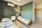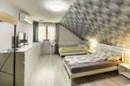 A közel 70 négyzetméteres családi apartman pedig egy teljesen felszerelt amerikai konyha-étkezős-nappalis, fedett terasszal, 2 hálószobával mely ideális akár egy nagy család számára is. Emellett egy kisebb, 2 személyes apartman is helyet kapott saját fürdőszobával.