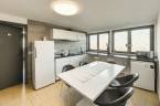 Az emeleten egy közös használatú konyha, étkező és nappali került kialakításra, mellette négy különálló apartman, mindegyik saját fürdőszobával rendelkezik.