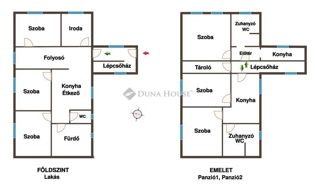 A házban 1 lakás + 2 külön bejáratú apartman található