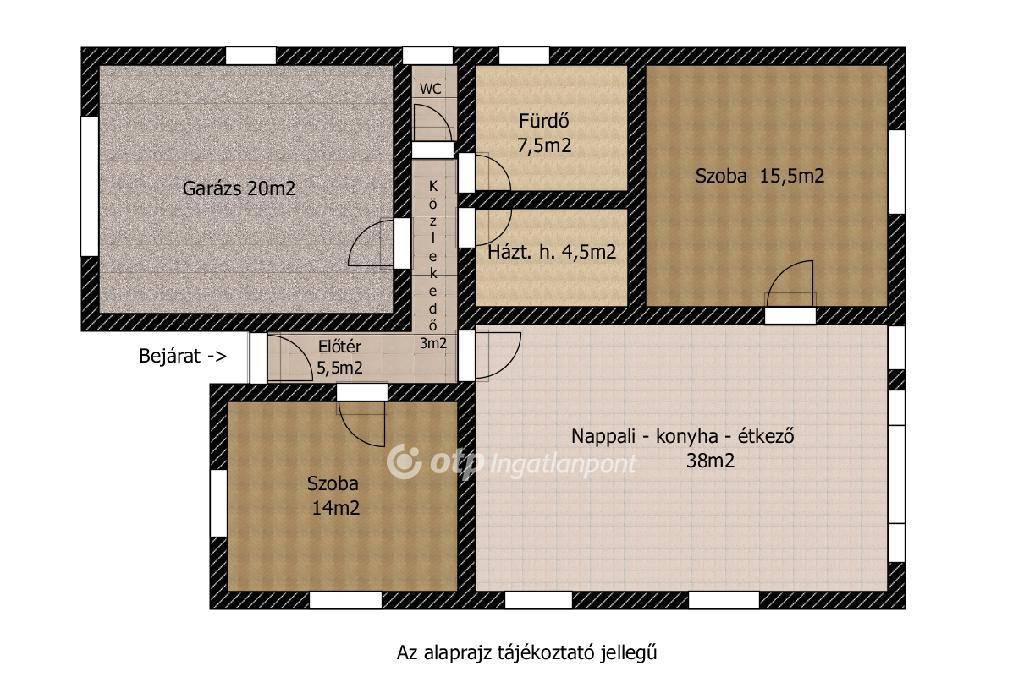 - Helyiségek: Előtér, 2 tágas szoba, modern amerikaikonyhás nappali, praktikus háztartási helyiség, fürdőszoba, külön WC , közlekedő, garázs