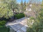 Rendezett, parkosított kert, nyugodt, zöld környezet.