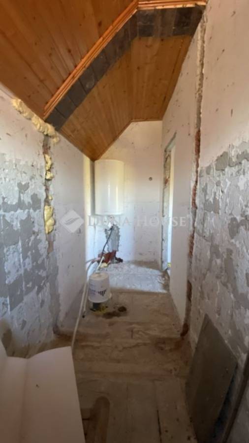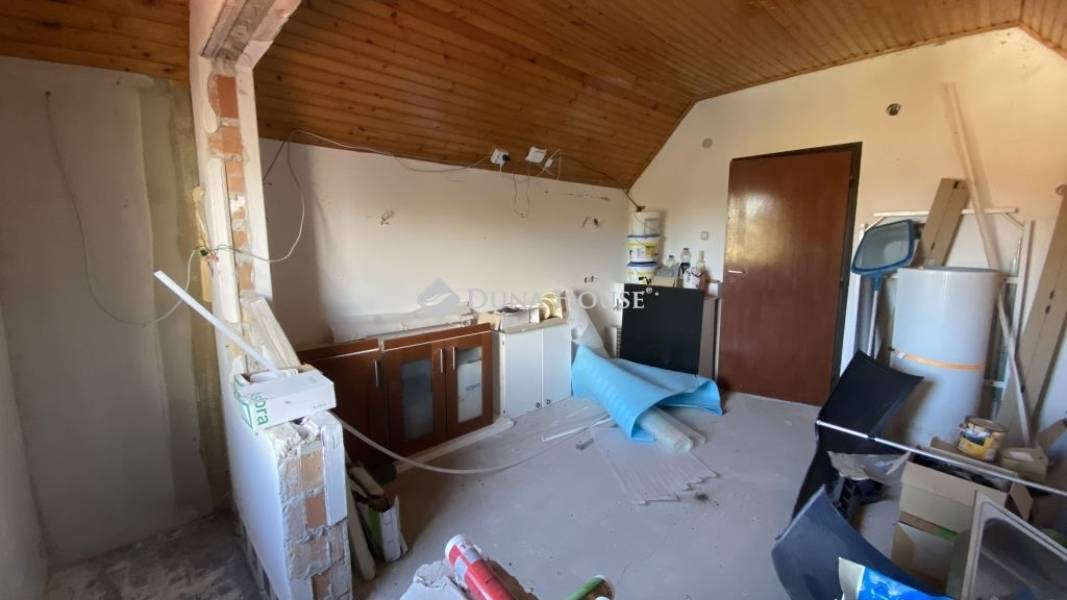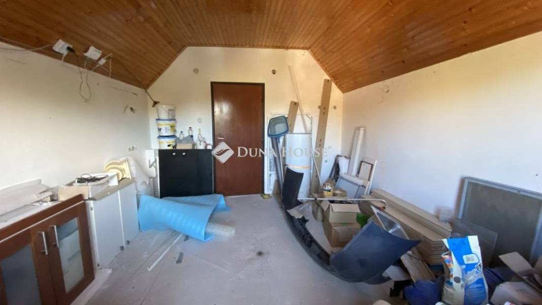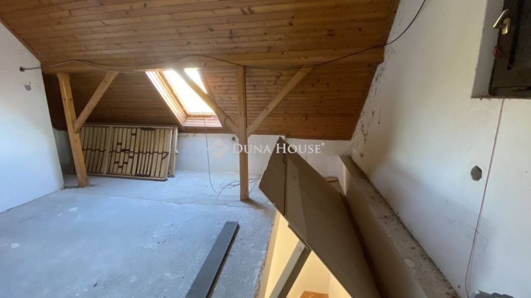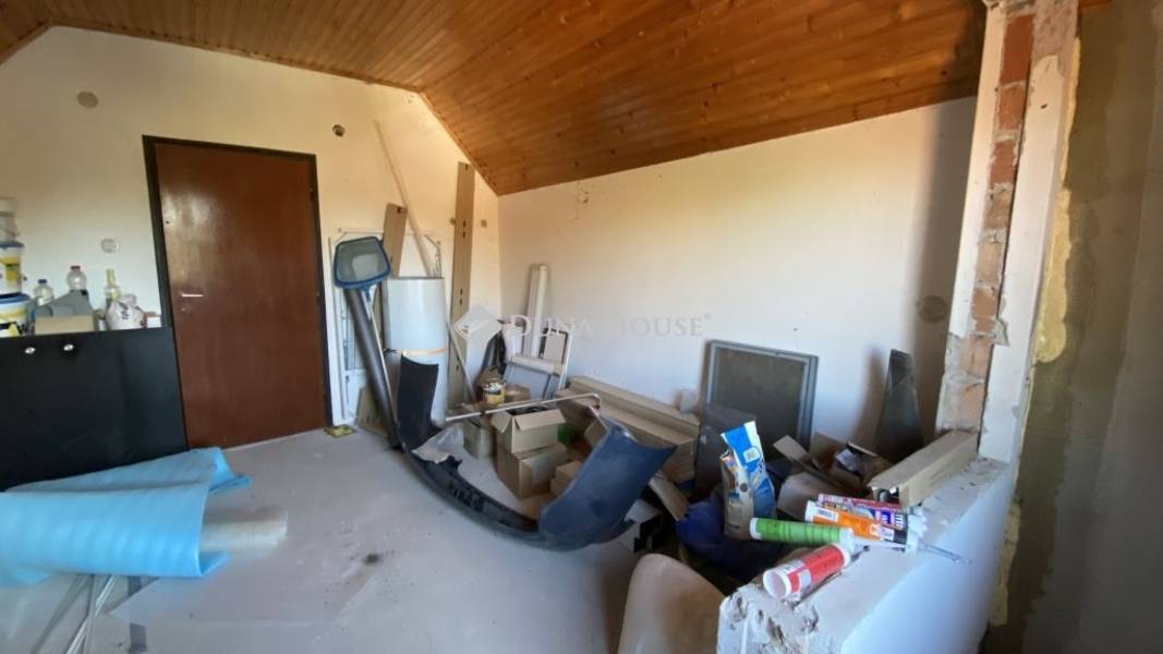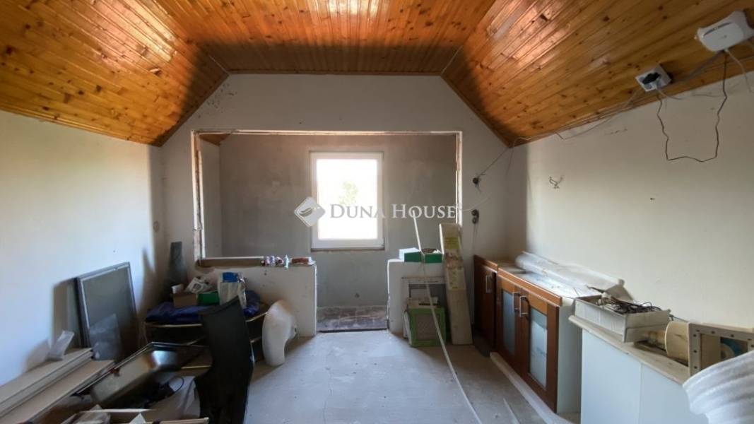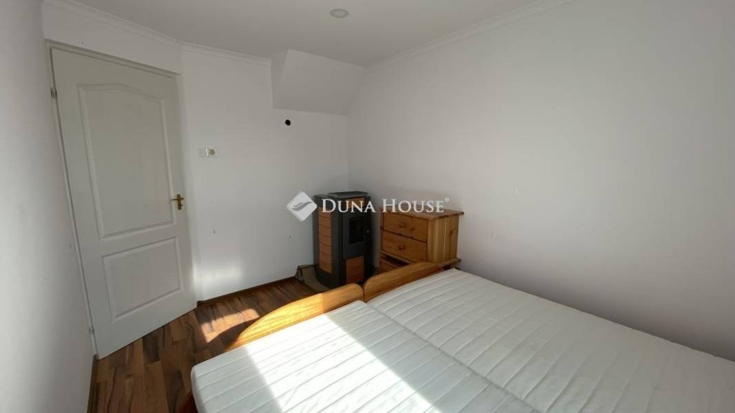 A felső szinten egy közlekedő, szoba és fürdőszoba WC található, ez a rész azonban még befejezésre vár, így az új tulajdonos saját igényei szerint alakíthatja ki.Az ingatlan fűtését egy pellet kazán és hűtő/fűtő klímaberendezés biztosítja, így akár egész évben használható.
