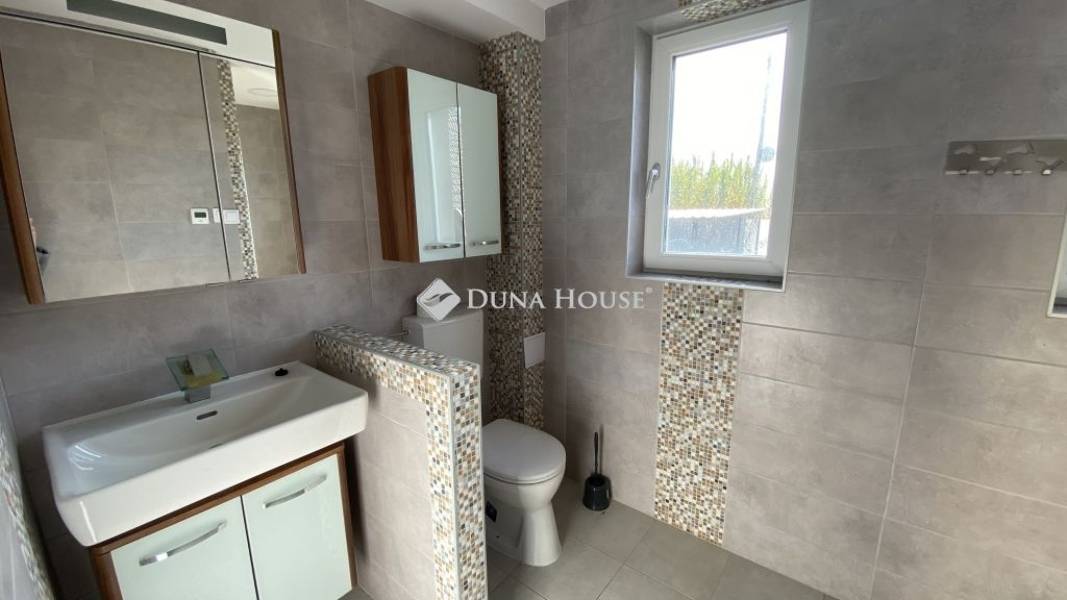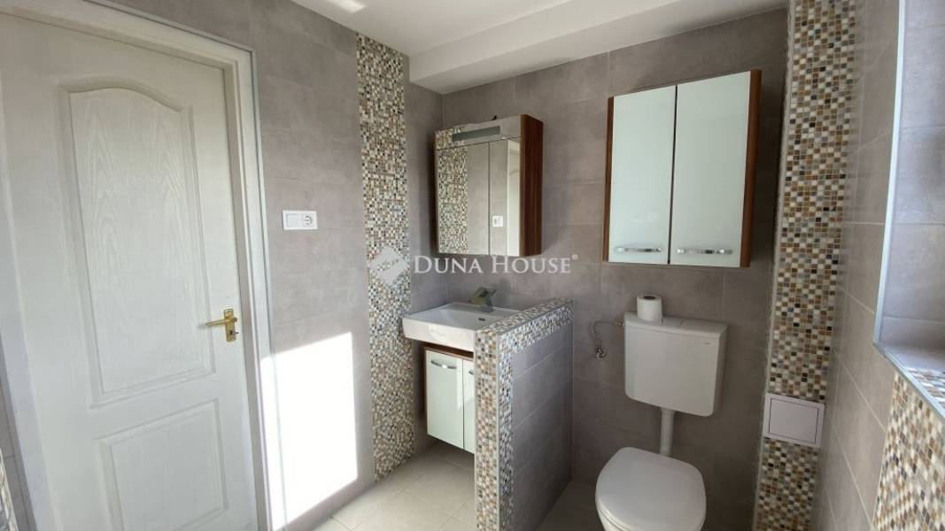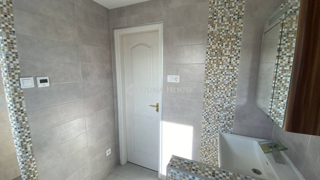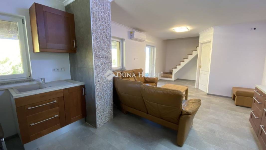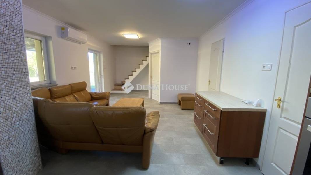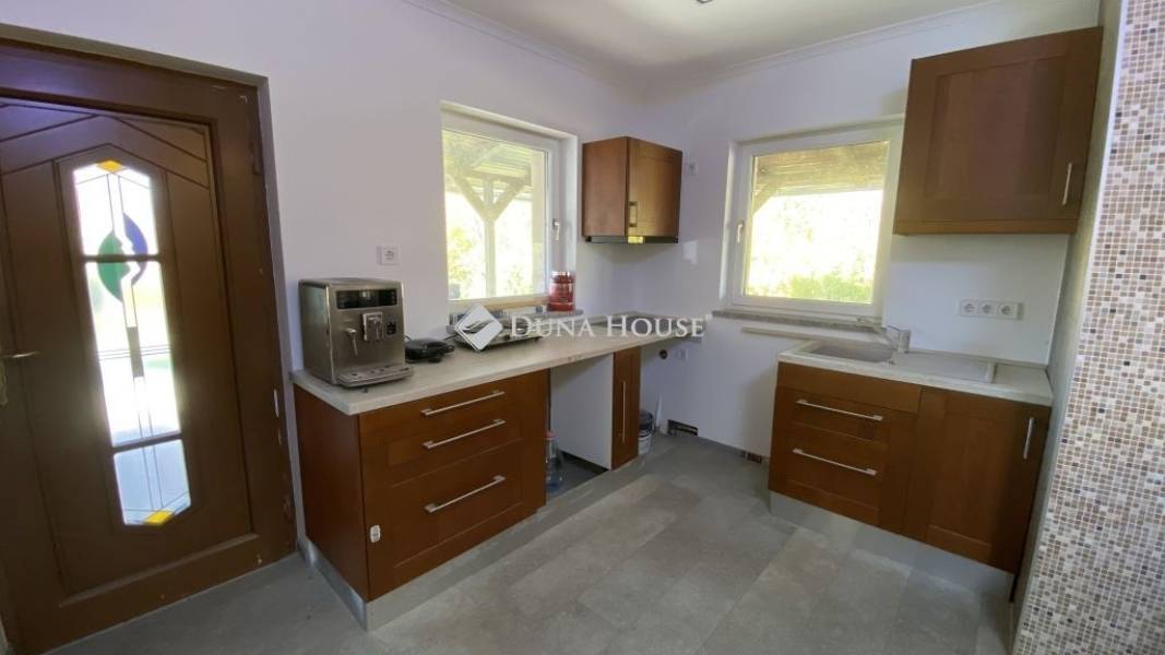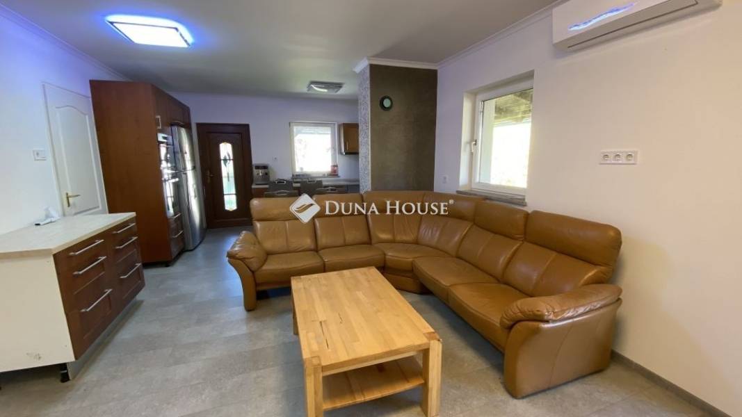 A felső szinten egy közlekedő, szoba és fürdőszoba WC található, ez a rész azonban még befejezésre vár, így az új tulajdonos saját igényei szerint alakíthatja ki.Az ingatlan fűtését egy pellet kazán és hűtő/fűtő klímaberendezés biztosítja, így akár egész évben használható.