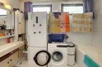 A földszinten megtalálható nagy nappali két hálószobával, egy tágas konyha-étkező, valamint kamra, melyek praktikus elrendezésüknél fogva tökéletesen megfelelnek a mindennapi igényeknek. Ezenkívül egy nagyméretű fürdőszoba fürdőkáddal és külön wc szolgálja az itt élők kényelmét.