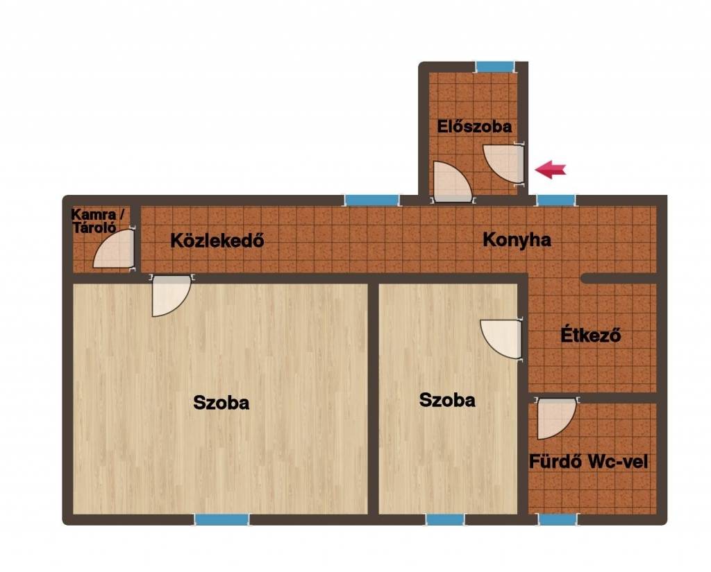 Az ingatlan 65 négyzetméteres lakóterében kialakításra került 2 szoba, előszoba, konyha, étkező, fürdőszoba, és tároló (régebben kazánház volt).