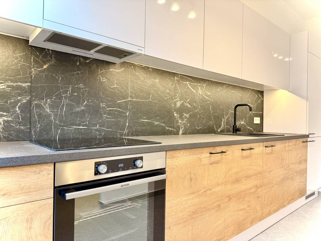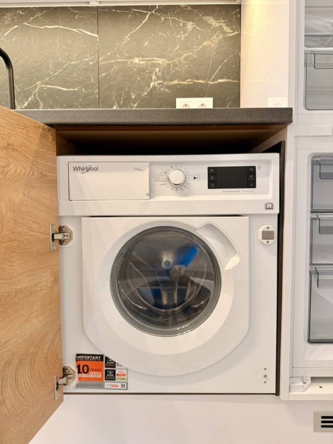 Egyedi tervezésű, gépesített konyhabútor (sütő, főzőlap, szagelszívó, mosogatógép, mosógép, fagyasztós hűtő)