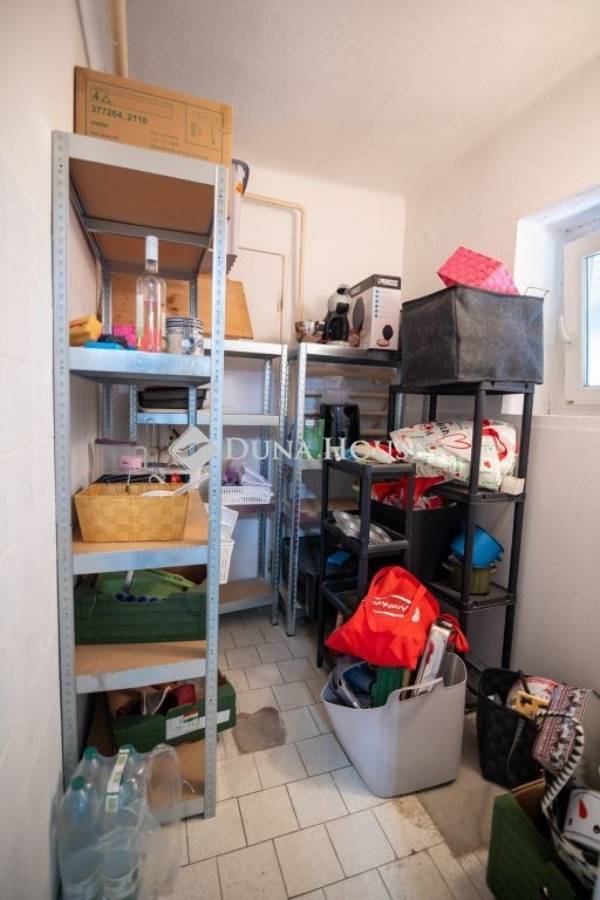 Elosztása: 2 szoba, világos előtér, fürdőszoba, téliesített folyosó, konyha-étkező, kamra és tároló.